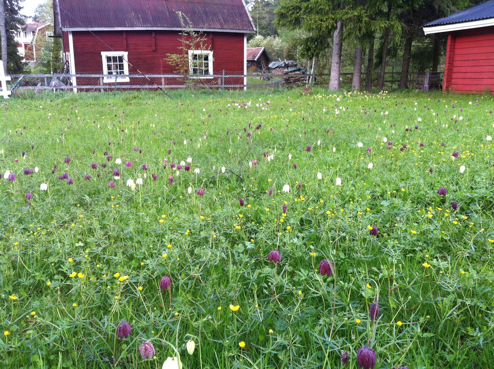 Nu är det verkligen försommar på landet. På grannens äng blommar K